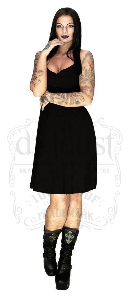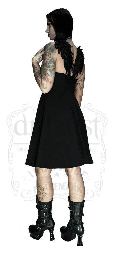 Black silk midi dress with a lovely set of black wings on the back.