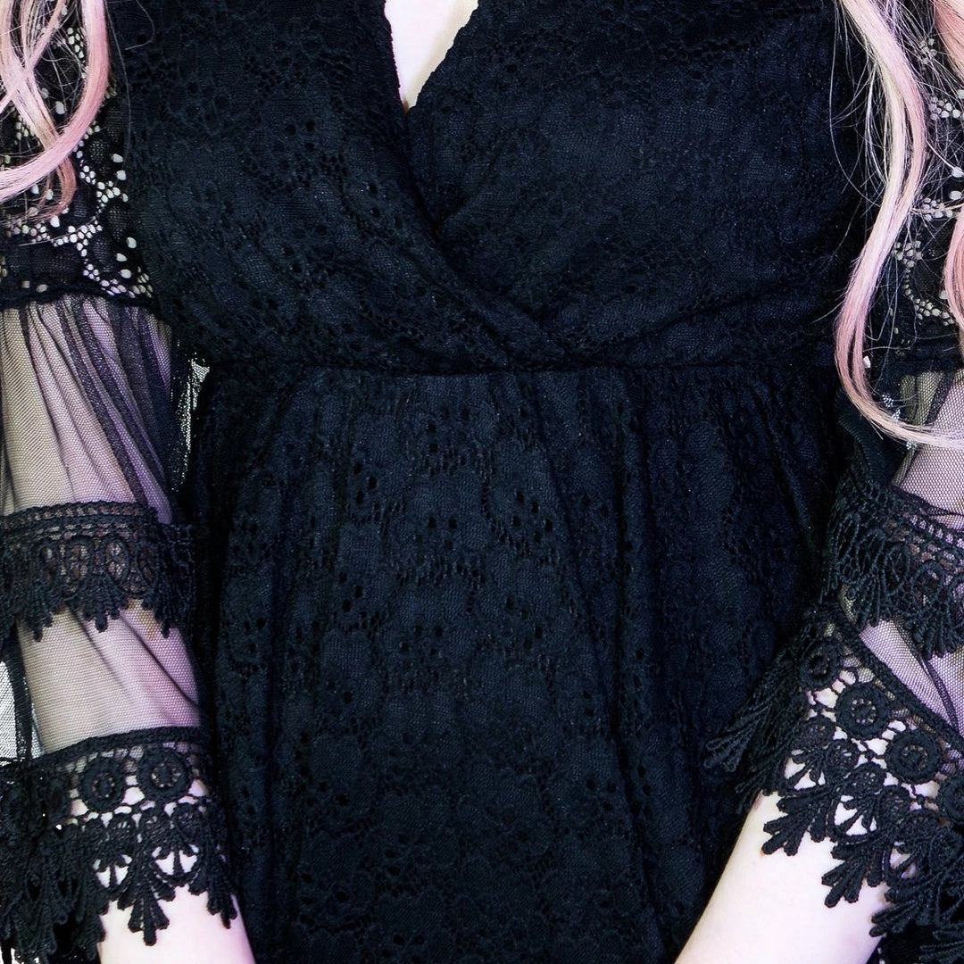 Crochet Detail Black Playsuit Dress – Hallie