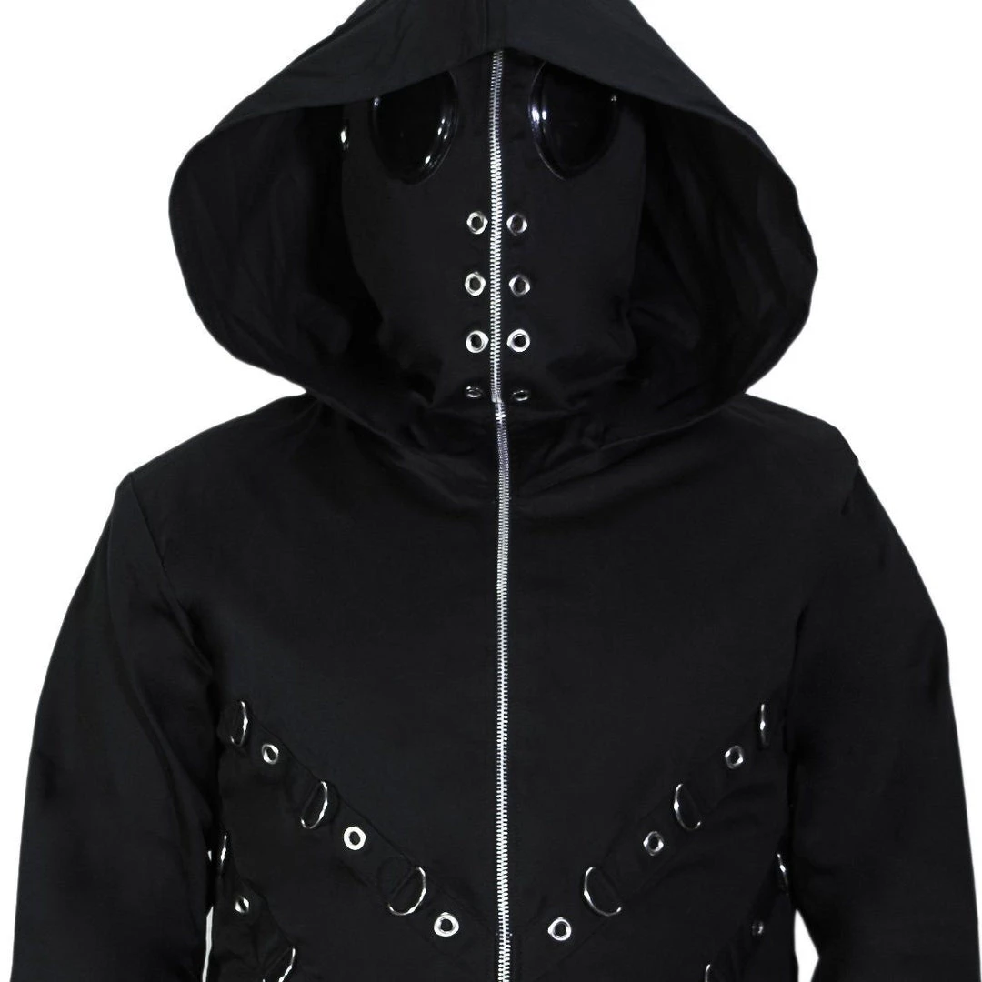 This iconic jacket features built-in glasses and a hood that zips up completely.