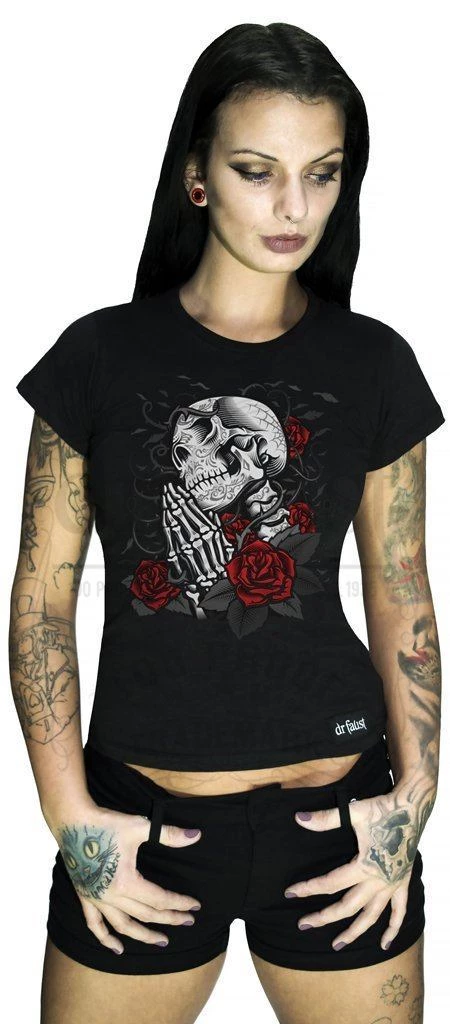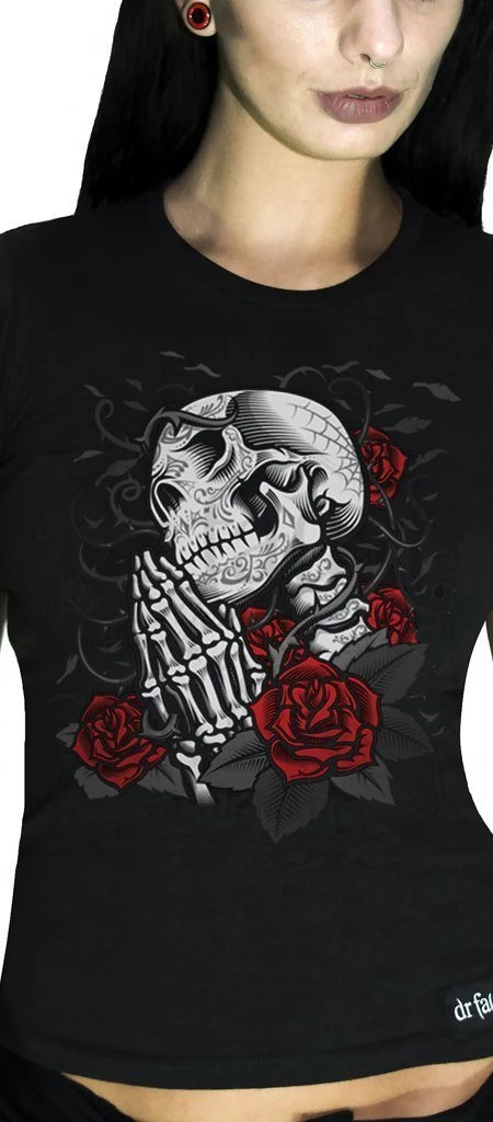 - Praying skull among roses.