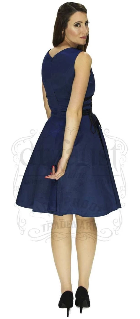 Dr Faust Raw Silk Navy Midi Dress - Molly