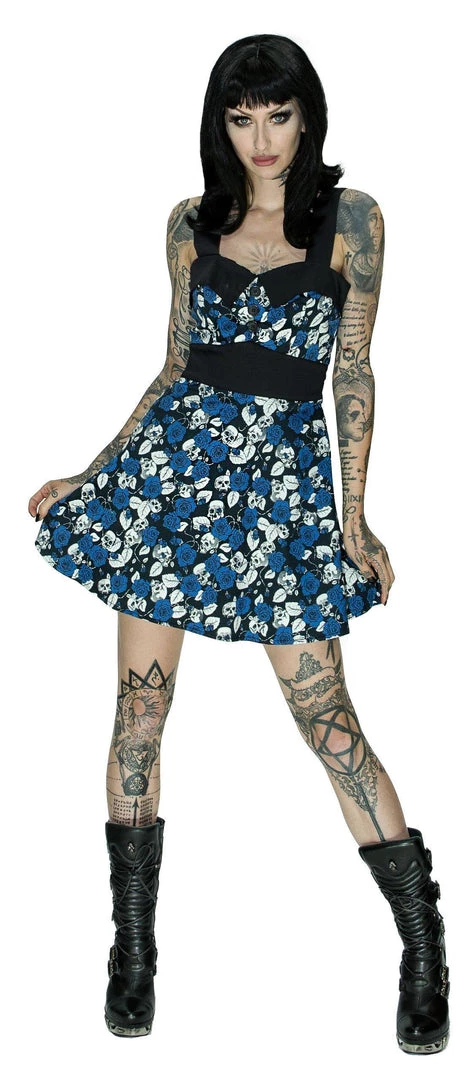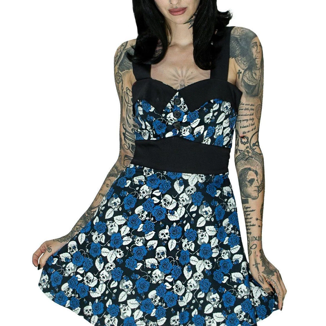 - Blue Roses and Skulls design.