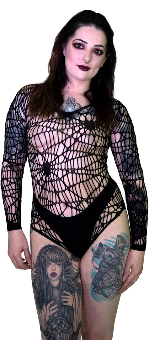 Spider Web Fish Net Black Sheer Bodysuit – Idania